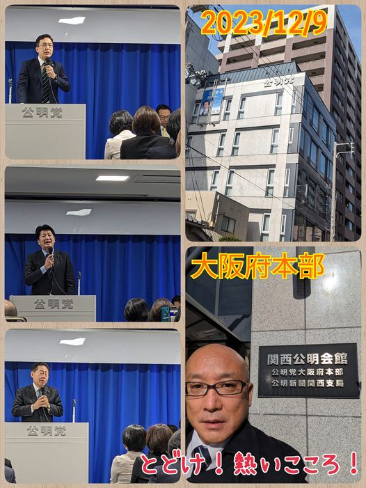 12月9日(土曜日)お疲れ様です。本日は公明党大阪府本部において、12月度議員総会(本年最後の議員総会)が行われました。杉ひさたけ参議院議員、石川府本部代表、北側党副代表より、年末年始の取り組みについてのお話がありました。しっかり取組んでいきたいと思います!とどけ!熱いこころ!
