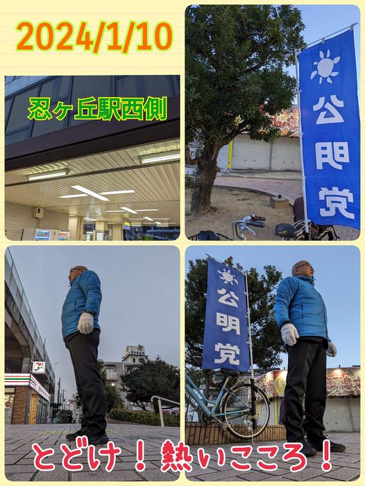 1月10日(水曜日)今朝は、忍ヶ丘駅西側からご挨拶をさせて頂きました。寒い朝でしたね。年明け初めの忍ヶ丘駅でしたので、新年のご挨拶ができた方もいました。その後登庁しまして作業し、挨拶回りへ。とどけ!熱いこころ!