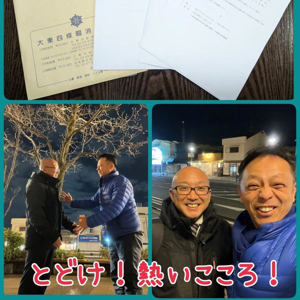2月8日(木曜日)本日は、登庁致しまして、大東四條畷消防本部の議案説明がありました。消防本部委員として、確認致しました。寝屋川市辻谷議員と、少しの時間でしたがより良い社会のために誓いの語らいを!青年時代を共に走ったので、会えばその時を思い出し、笑顔になれる。ありがたいです。