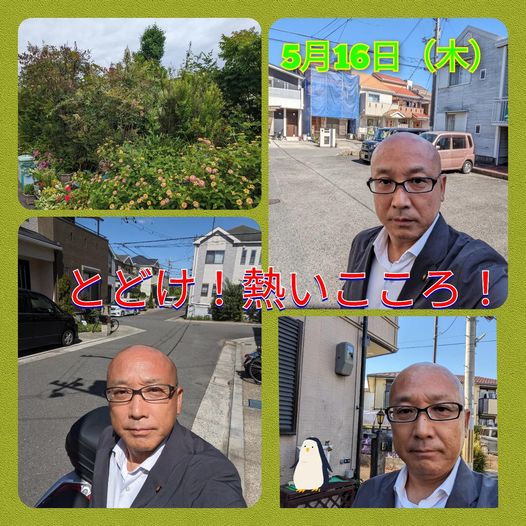 5月16日(木曜日)お疲れ様です。本日は、地域へ訪問と市民相談へ天候も不安定で陽がさして、暖かくなっても、風が強くて。風も少し寒いぐらいでした。いろんなお話ができました、ありがとうございました。とどけ!熱いこころ!