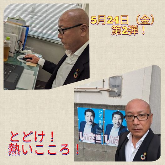 5月24日(金曜日)第2弾!本日は、朝の四条畷駅ご挨拶のあと、登庁しまして、市民相談の準備確認などしておりました。その後は、地域を回らせて頂き、ご挨拶に伺いました。それから、移動して門真市へ数件訪問させて頂きました。とどけ!熱いこころ!