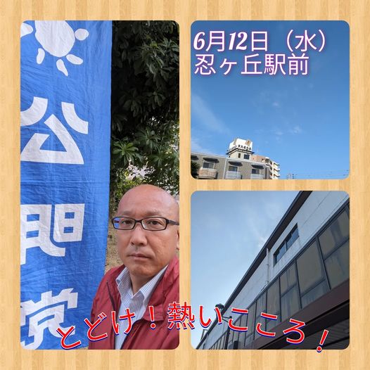 6月12日(水曜日)おはようございます!今朝は、忍ヶ丘駅西側からご挨拶をさせて頂きました。朝もかなり暑くなってきました。ご挨拶の時に、暑いですねが出るようになりました。たくさんの方にご挨拶頂き、小さなお友達もハイタッチで癒され✨皆様に感謝です、ありがとうございます。本日も1日頑張ります!とどけ!熱いこころ!