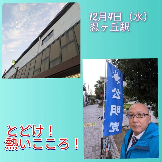 12月4日(水曜日)おはようございます!今朝は、忍ヶ丘駅西側からご挨拶をさせて頂きました。風は無いのに、冷たく感じる朝でしたね。いつも皆様とのご挨拶、小さなお友達に癒されながら、元気を頂きました!その後、市民相談と地域へご挨拶へ!