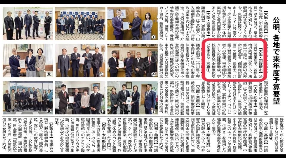 12月22日(日)おはようございます!12月22日付けの公明新聞に四條畷市 東市長への予算要望書提出が掲載されました!皆様のためにこれからもしっかりと進めてまいります!