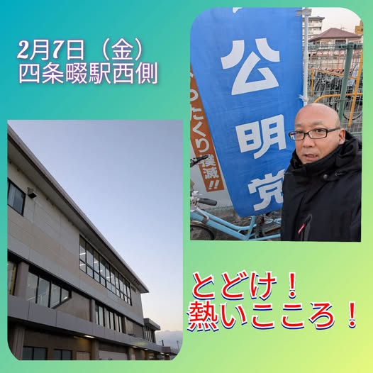 2月7日(金曜日)おはようございます!今朝は、四条畷駅西側にてご挨拶させて頂きました。底冷えの寒い朝でした。たくさんの方とご挨拶できました。「寒いね〜、頑張ってね」と激励くださいます。いつもいつもありがとうございます!寒波は明日も続きます。お気をつけてお過ごしください。市民相談、ご報告と頑張ってまいります。