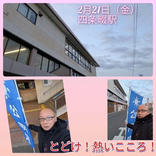 今朝は、四条畷駅西側にてご挨拶させて頂きました。まだまだ寒いですね。