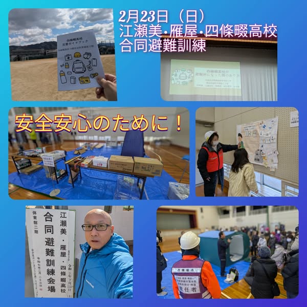 本日は、大阪府立四條畷高校にて、地元自治会 江瀬美·雁屋·四條畷高校の合同避難訓練がありましたので、参加させていただきました。