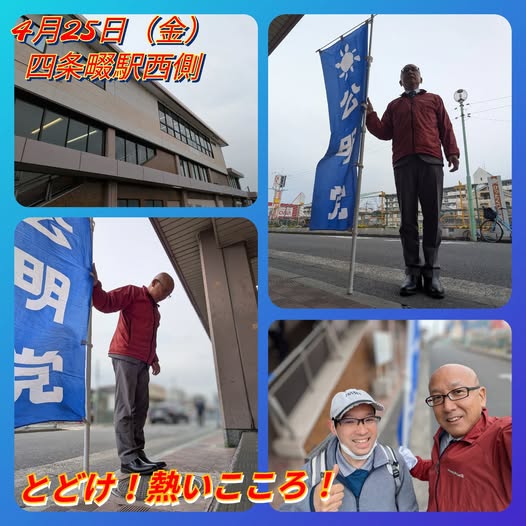 4月25日(金曜日)今朝は、四条畷駅西側にてご挨拶させて頂きました。いつもいつもありがとうございます!少し肌寒い朝でしたね。「今朝は少し寒いね」との声が多かったですね。体調不良もよくお聞きしますので、お気をつけください。皆さま元気に行ってらっしゃいませ!とどけ!熱いこころ!