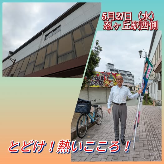今朝は、忍ヶ丘駅西側からご挨拶をさせて頂きました。