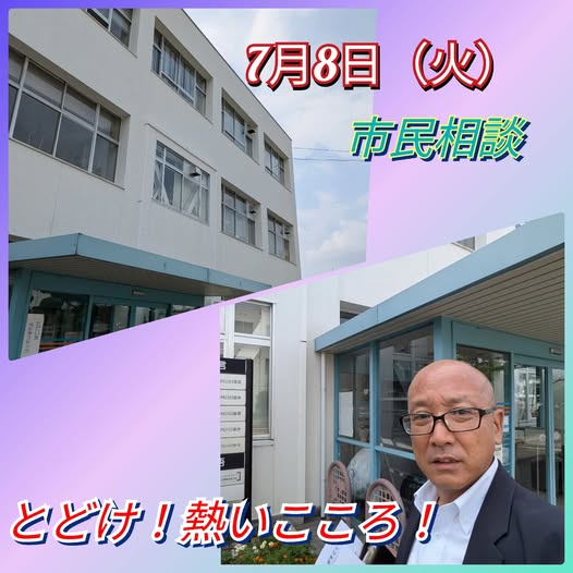 7月8日(火曜日)お疲れ様です。本日は、朝から登庁いたしまして、要望書を担当課へ、その後は、市民相談をいただきました。訪問に出ようかと思ったら、すごい雨!明日でなくて良かったです。明日、9日16時より忍ヶ丘駅東側にて、街頭演説会がございます。暑い日が続いておりますが、よろしくお願い致します!とどけ!熱いこころ!