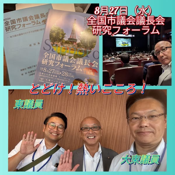 ただいま、北海道札幌市にて開催の全国市議会議長会研究フォーラム出席のために札幌市へ出張しております。