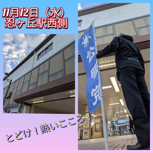 11月12日(水曜日)今朝は、忍ヶ丘駅西側からご挨拶をさせて頂きました。本当に寒い朝ですね😓たくさんの方々とご挨拶できました。いつもありがとうございます!この後は登庁しまして、市民相談を担当課へ。午後は訪問活動と市民相談へ動いてまいります!!頑張ってまいります!