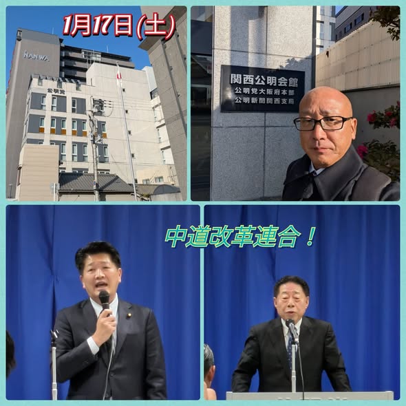 1月17日(土曜日)本日は、公明党大阪府本部において、議員総会がありました。生活者ファースト、日本の平和を守り抜くことを実現してゆく、新政党「中道改革連合」が設立。さらに決意をし平和のため、安心して暮らせる社会をつくっていく!!頑張ってまいります!とどけ!熱いこころ!
