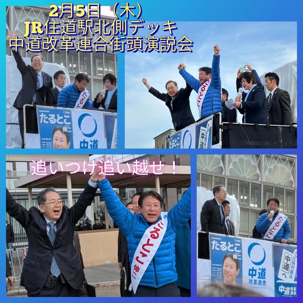 追いつけ追い越せ!頑張れたるとこ!頑張れ中道!平和と生活を守る中道!ここからが正念場!頑張ってまいります!とどけ!熱いこころ!