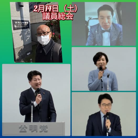 2月14日(土曜日)本日は、公明党大阪府本部において、議員総会がありました。中道改革連合 いさ進一議員、国重とおる議員、山本かなえ議員が挨拶されました!御礼とこれからの決意を力強く誓われていました。これからもさらなる団結で、国民のために、平和と生活を守っていく施策を進めていく決意でした!とどけ!熱いこころ!