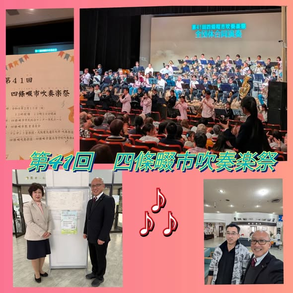 午後からは、四條畷市市民総合センターにて開催の「第41回 四條畷市吹奏楽祭」を来賓として、#うつみ久子 府議と公明党市議団で拝聴させていただきました。