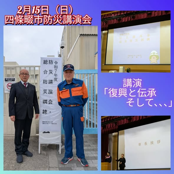 本日は、四條畷市立西中学校体育館にて開催されました「四條畷市防災講演会」へ参加させていただきました。