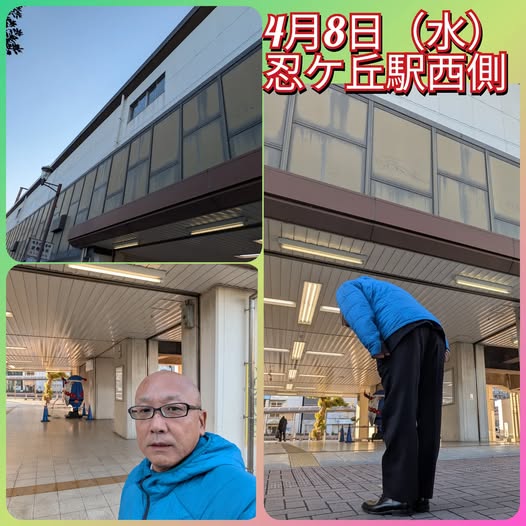 4月8日(水曜日)今朝は、忍ケ丘駅西側からご挨拶をさせていただきました。寒い朝でしたね。西側はとくに陽が当たらないので、寒いです。朝晩の気温差が大きいので、お身体にはご留意ください。今日も1日行ってらっしゃいませ!!本日はこの後、市内小学校、午後からは市内中学校の入学式がございます。お祝いさせていただきます!!とどけ!熱いこころ!