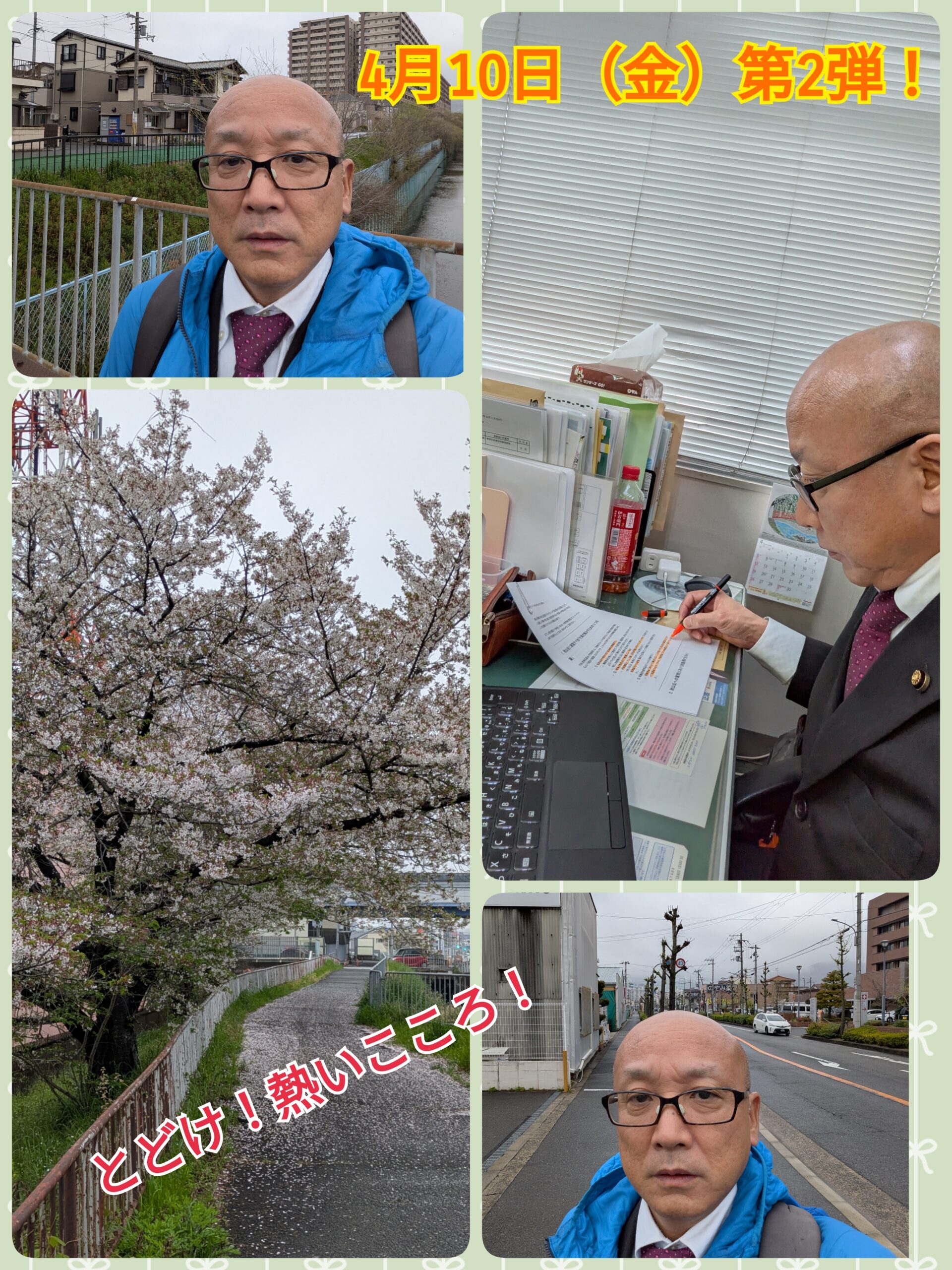 地域の方とご一緒にご挨拶へいかせていただき、地域訪問へ廻りました。あいにくの雨天でしたので徒歩で廻り、途中、生徒さん達と挨拶したり、雨で桜が散って少しさみしいと感じました。
