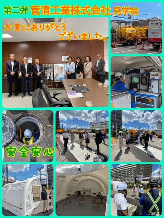 下水道管の洗浄作業、TVカメラ調査作業、K-PRO作業(スクリーニング、自走式カメラ)など実施見学、暑い中、作業を実施して頂き、本当にありがとうございました。