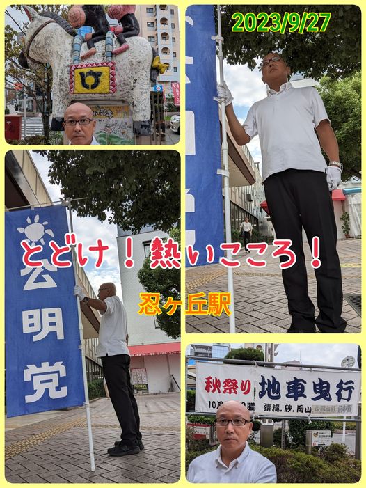9月27日(水曜日)おはようございます!今朝は、忍ヶ丘駅東側からご挨拶をさせて頂きました。随分と過ごしやすくなりましたが、まだまだ陽が昇ると暑いですね。小さなお子様が声をかけてくれました。めっちゃ可愛い、双子かな。朝から微笑みをもらえた、一幕でした。市民相談、資料作りと、1日頑張ります!とどけ!熱いこころ!