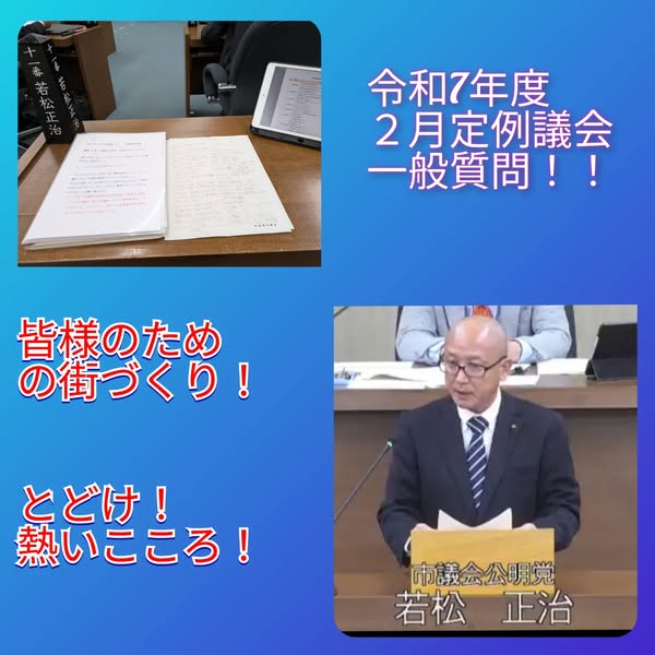 本日は、令和7年度2月定例議会において、一般質問をいたしました。